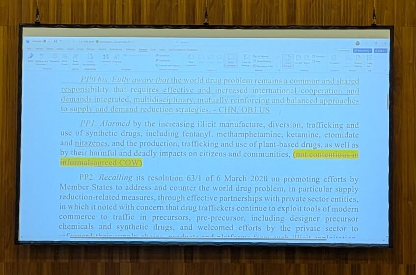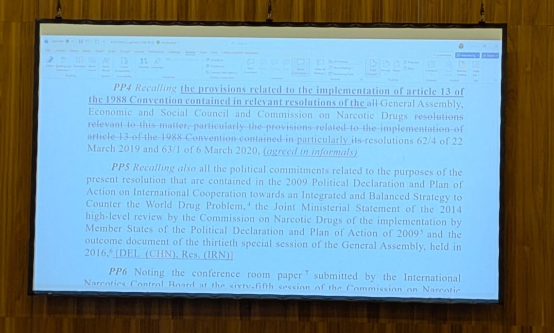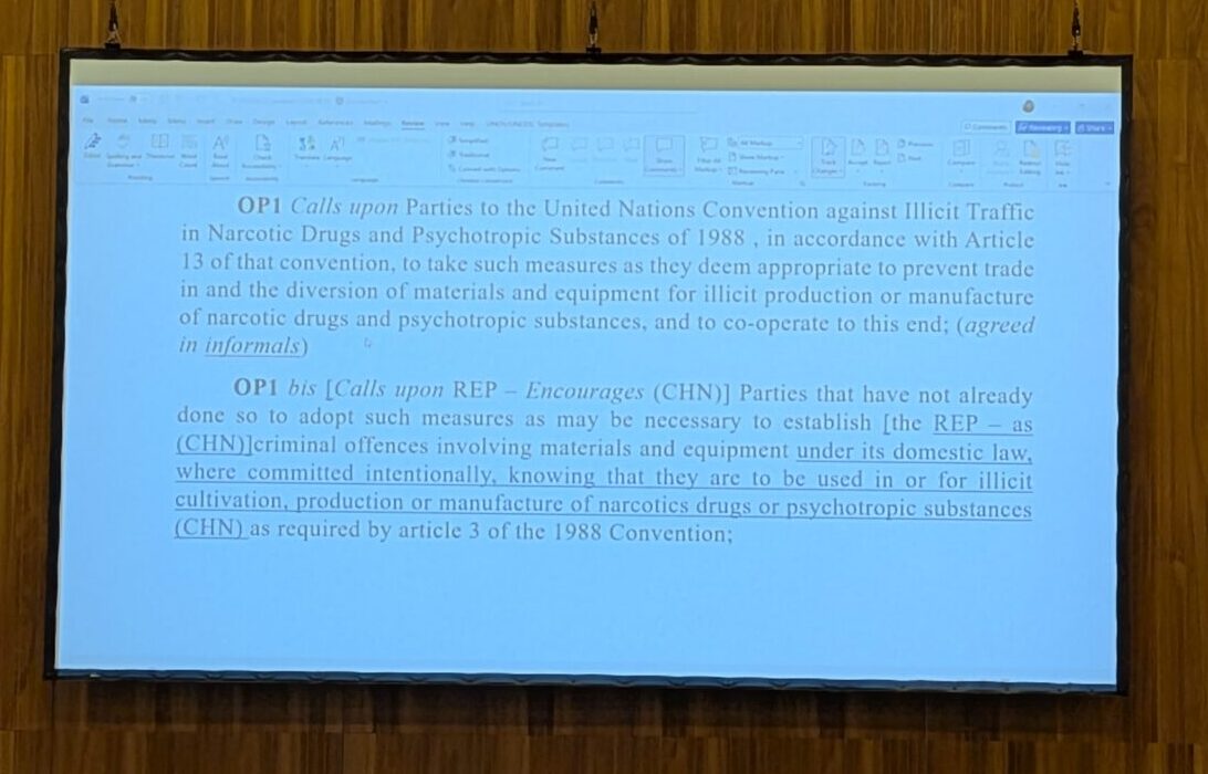 China: Our first suggestion was ‘to prevent their diversion’ and end it there. The sponsors said it was important to talk about exploitation in the resolution. So we wanted to add ‘illicit’ as a qualifier. We are in CND, not WTO or another scenario — so our purpose is to avoid diversion for illicit purposes.