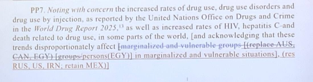 Russia: We cannot support the idea of keeping ‘drug checking outputs’, because this is something related to drug consumption rooms, so we need to keep it more general and mention those countries that have this practice.
