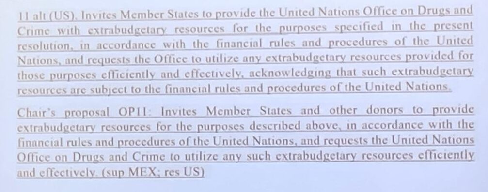 Mexico: Just to point out that in this formulation, it makes sense because of the mention of INCB and UNODC. When we’re addressing UNODC and INCB, we should be able to use this.
